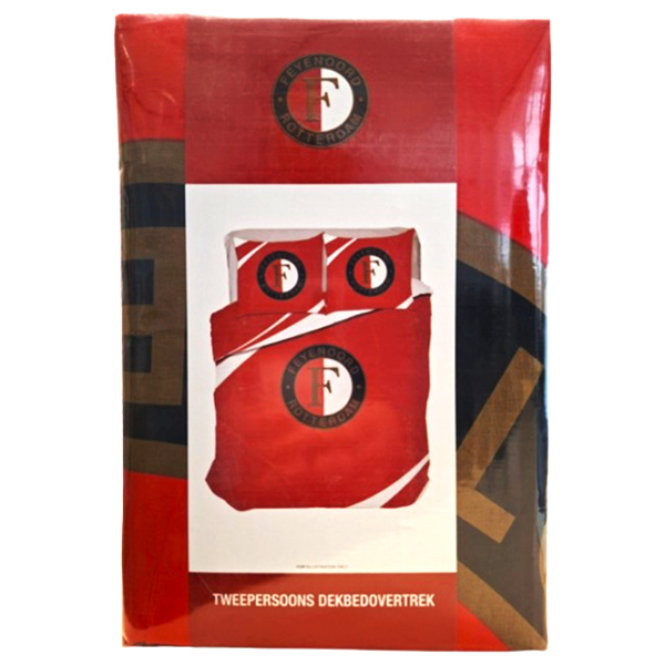 Wat is nou mooier dan samen met je partner in slaap vallen onder een dekbedovertrek van je favoriete voetbalclub? Met dit dekbedovertrek van Feyenoord kan dat. Het dekbedovertrek is 200 x 200 cm groot. Twee bijpassende kussenslopen van 80 x 80 cm zijn inbegrepen.